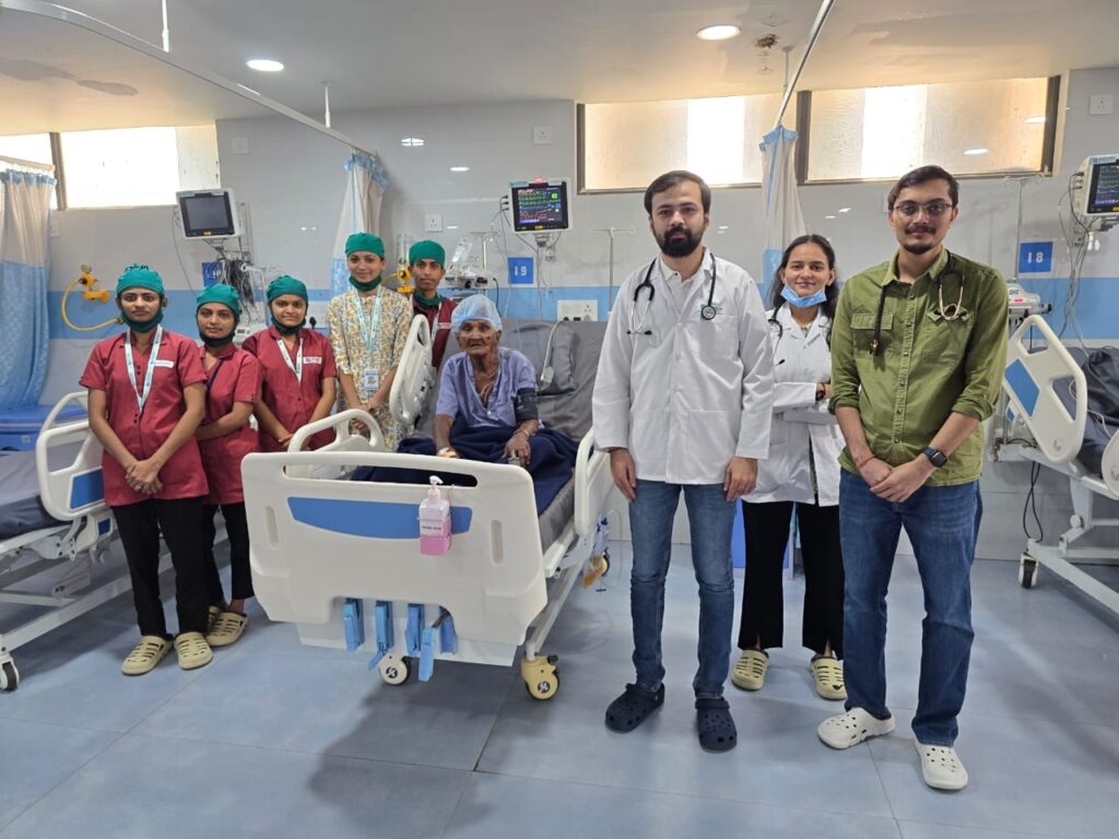 23 માર્ચ, 2026 ના રોજ એક 100 વર્ષ ના મહિલા દર્દી આયુષ હોસ્પિટલ મા ઈમરજન્સી વિભાગમા અર્ધ બેભાન હાલતમાં આવ્યા, ડો.સત્યજીતસિંહ જાડેજા સાહેબ દ્વારા ઉંડાણમા તપાસ કરતા જણાયું કે દર્દી નું ઓક્સિજન લેવલ માત્ર 60% છે, હ્રદય ના ધબકારા જીવલેણ ખૂબજ વધારે અને અનિયમિત છે, હ્રદય નબળુ પડી ગયું છે, ફેફસામા ચેપ ફેલાયેલો છે, ફેફસાં પણ નબળા પડી ગયા છે, દર્દી નું બીપી ખૂબજ ઓછુ છે, દર્દી ના શરીર મા ઝેરી CO2 વાયુ નું લેવલ ખૂબજ વધારે છે. આમ દર્દી ની સંપૂર્ણ પરિસ્થિતિ ને ધ્યાન પર લેતા ડો.સત્યજીતસિંહ જાડેજા સાહેબ દ્વારા તેમને તાત્કાલિક વેન્ટિલેટર પર લઈ આઈ.સી.યુ માં દાખલ કરવામાં આવ્યા. અંતે આયુષ હોસ્પિટલમાં ડો.સત્યજીતસિંહ જાડેજા સાહેબ ના સચોટ નિદાન અને સારવાર ના પગલે માત્ર 6 દિવસમાં વેન્ટિલેટર પરના અને આટલી બધી ગંભીર બીમારી એક સાથે લાગુ પડેલા 100 વર્ષ ના દર્દીને તેમના પગ પર ચાલતા મોકલી આયુષ હોસ્પિટલ માથી હસતાં મોઢે રજા કરવામાં આવી. દર્દી ના સગાઓ દ્વારા, ” સાહેબ અમારા બા ની પરિસ્થિતિ જોતા અમને એમના જીવનની આશા જ નહોતી, તમે ચમત્કાર કરી દીધો ” જેવા લાગણીભર્યા શબ્દો સાથે આયુષ હોસ્પિટલ અને ડો.સત્યજીતસિંહ જાડેજા સાહેબ નો આભાર માનવામાં આવ્યો હતો.