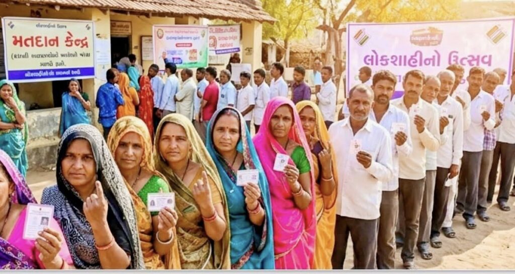 ગુજરાતમાં આજે સ્થાનિક સ્વરાજની સંસ્થાઓ માટે યોજાયેલી ચૂંટણીમાં મતદારોનો અભૂતપૂર્વ ઉત્સાહ જોવા મળી રહ્યો છે. બપોરે 4 વાગ્યા સુધીના સત્તાવાર આંકડા મુજબ, રાજ્યના વિવિધ વિસ્તારોમાં શાંતિપૂર્ણ માહોલમાં મતદાન પ્રક્રિયા આગળ વધી રહી છે. કાળઝાળ ગરમી હોવા છતાં, ખાસ કરીને ગ્રામીણ વિસ્તારોમાં મતદારોની લાંબી કતારો જોવા મળી રહી છે.