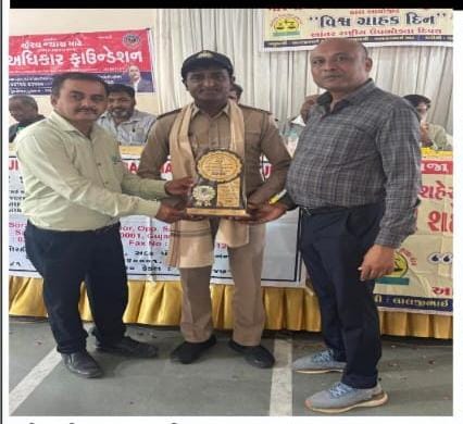 જિલ્લા ગ્રાહક સુરક્ષા મંડળ દ્વારા ગ્રાહક દિવસ નિમિત્તે યોજાયેલા કાર્યક્રમમાં ગ્રાહક જાગૃતિ અને જનહિતને પ્રાથમિકતા આપવામાં આવી. પ્રસંગે ટ્રાફિક પોલીસના કોન્સ્ટેબલ ભાનુભાઈ બાલાસરા અને કેતનભાઈ મોગીયાને શ્રેષ્ઠ સેવાઓ બદલ સન્માનિત કરવામાં આવ્યા. વક્તાઓએ ગ્રાહકોને તેમના હકો અંગે સજાગ રહેવા, ખરીદી વખતે બિલ લેવાની અને છેતરપિંડીથી બચવાની સલાહ આપી. સાથે જ ડિજિટલ યુગમાં ઓનલાઈન ફ્રોડ સામે સાવચેત રહેવાની જરૂરિયાત પણ ઉલ્લેખાઈ. કાર્યક્રમે સ્પષ્ટ સંદેશ આપ્યો કે ગ્રાહક સુરક્ષા અને કાયદો-વ્યવસ્થા સાથે મળીને જ મજબૂત સમાજનું નિર્માણ કરે છે.