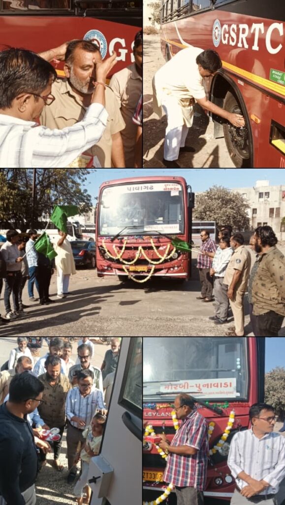 મોરબી ડેપો ખાતે પ્રજાની સુખાકારીને ધ્યાનમાં રાખીને મોરબી–પૂનાવાડા નવીન ગુર્જર નગરી બસ સેવા શરૂ કરવામાં આવી છે. આ નવી બસ સેવા દ્વારા મુસાફરોને વધુ સરળ અને સુવિધાજનક પરિવહન વ્યવસ્થા ઉપલબ્ધ બનશે.આ પ્રસંગે મોરબી શહેર ભાજપના મહામંત્રી ભાવેશભાઈ કણજારીયા, મહામંત્રી ભુપતભાઈ જારીયા, રાજકીય અગ્રણી જયદીપભાઈ દેત્રોજા, ભાજપ અગ્રણી અનિલભાઈ વરમોરા, પૂર્વ નગરપાલિકા પ્રમુખ કેતનભાઈ વિલપરા, ઉપપ્રમુખ કેયુરભાઈ પંડ્યા તેમજ પૂર્વ કાઉન્સિલર રોહિતભાઈ કણજારીયા હાજર રહ્યા હતા. સાથે જ મોરબી ડેપો મેનેજર કુંપાવત અને એસ.ટી સ્ટાફની ઉપસ્થિતિમાં બસને લીલીઝંડી આપી પ્રસ્થાન કરાવવામાં આવ્યું હતું.