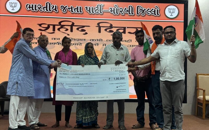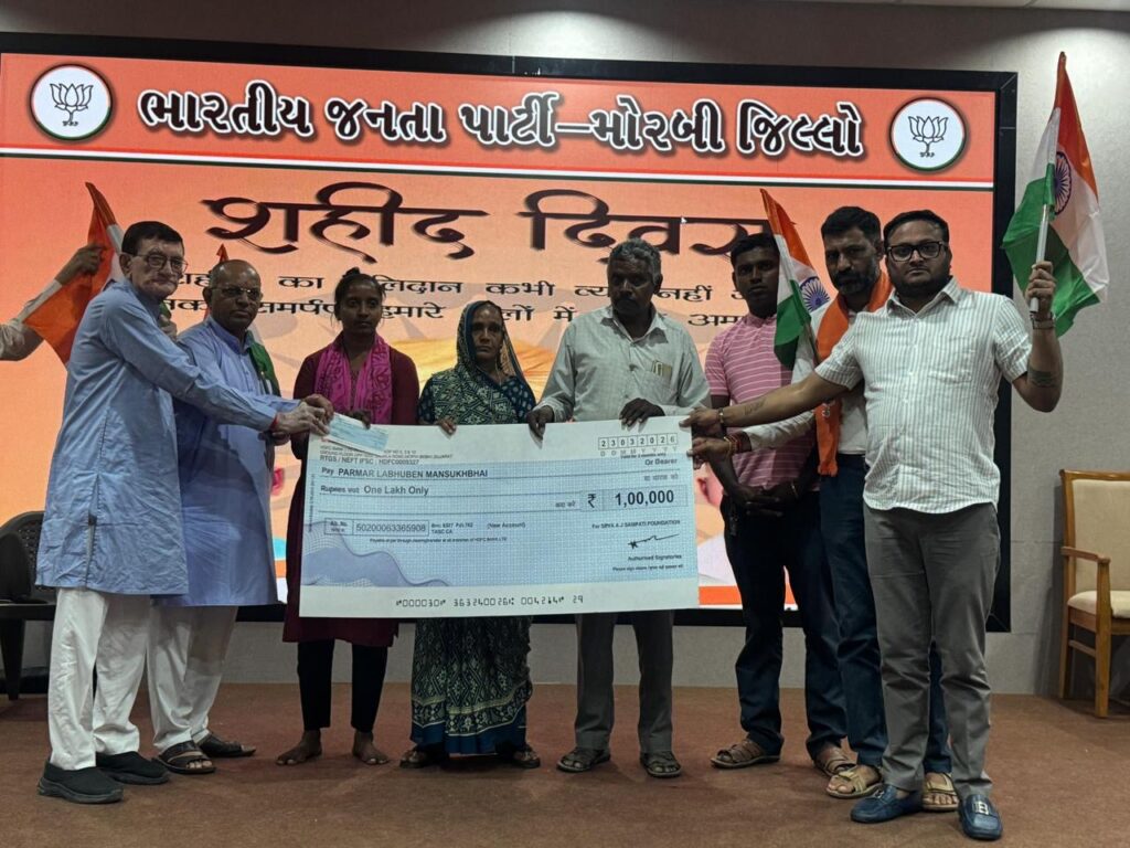મોરબી: શહીદ દિવસ નિમિત્તે ‘સેવા એ જ સંપત્તિ ફાઉન્ડેશન’ દ્વારા શહીદ ગણેશભાઈ પરમારના પરિવારને ₹1 લાખની સહાય
