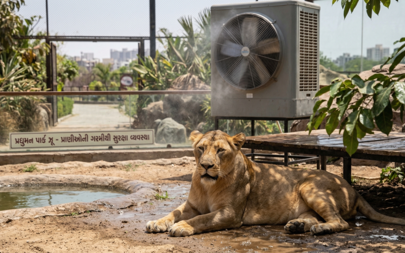 • કુલર અને ફેન: સિંહ, વાઘ, દીપડા અને રીંછ જેવા મોટા પ્રાણીઓના પાંજરામાં વોટર કુલર અને મોટા પંખા લગાવવામાં આવ્યા છે.
